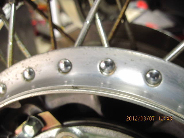 左は綺麗にしたハブ!!右側は綺麗にする前!!スポークの頭の所にワックスの付記の腰が溜まっています。ソフトワックスを使っていたのでしょうね~