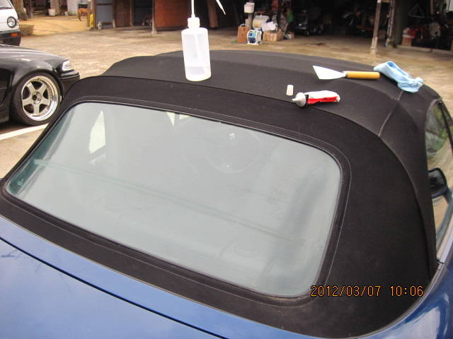 どうも、縁ゴムが劣化して縮んじゃってます~接着剤が固まるまでガムテープに頑張ってもらいました~