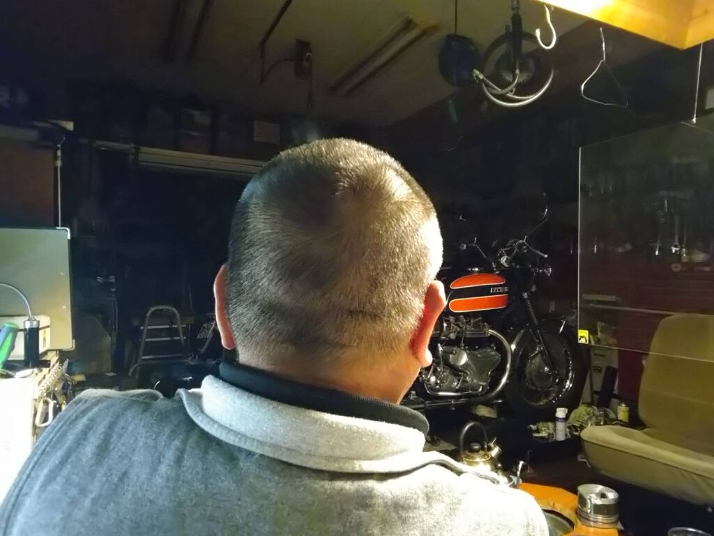 そんなぁ~Base的工場の日中は、お仲間が奥様のBIKEに跨がりやっ