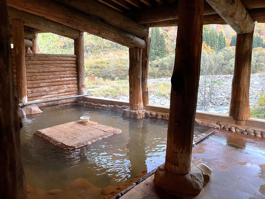 風呂と、更に露天は、川際